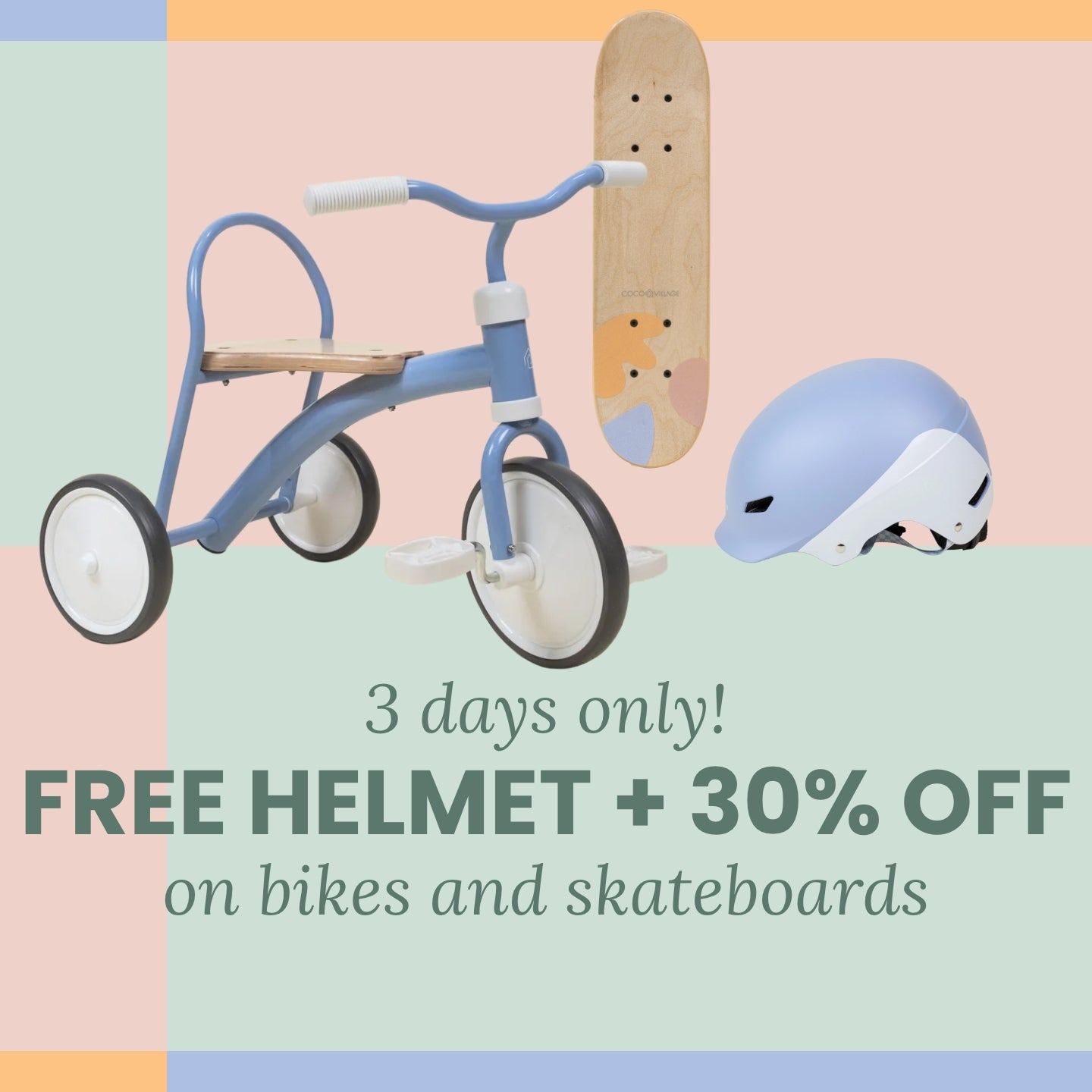 Evolutive Wooden Balance Bike - 3 in 1 - Seafoam