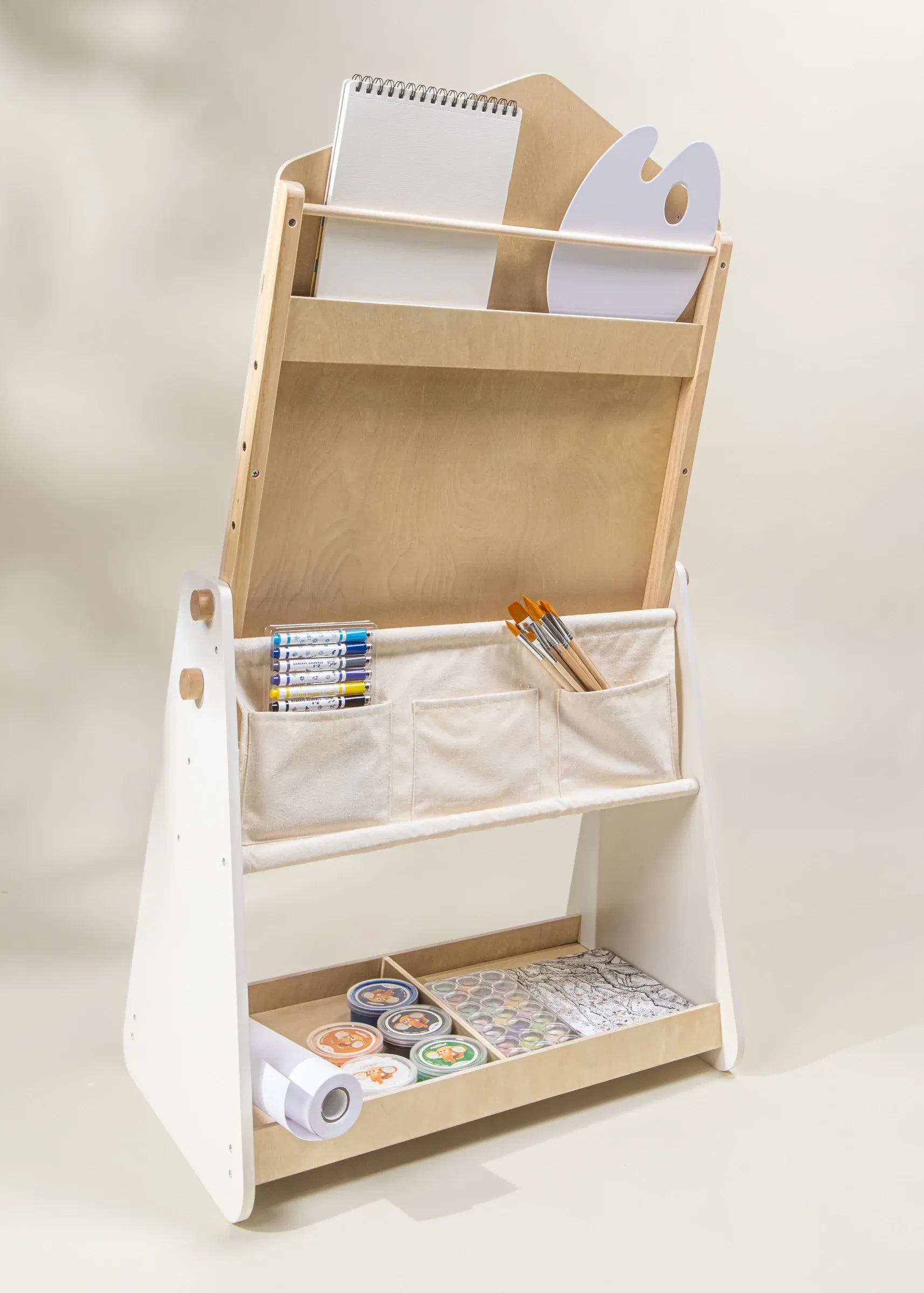 Offrez à votre enfant un espace créatif avec ce chevalet d'art en bois, conçu pour grandir avec lui. Fabriqué en bois de haute qualité, il offre un support stable pour la peinture et le dessin, avec plusieurs compartiments de rangement pour organiser les fournitures artistiques.