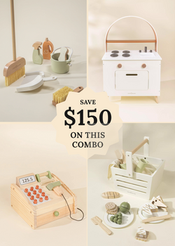 Le combo Comme Papa et Maman a été conçu pour les enfants curieux qui aiment reproduire les gestes des grands, explorer le monde qui les entoure et mener leurs propres aventures. Nettoyer, cuisiner, faire les courses ou organiser un pique-nique : tout est possible!