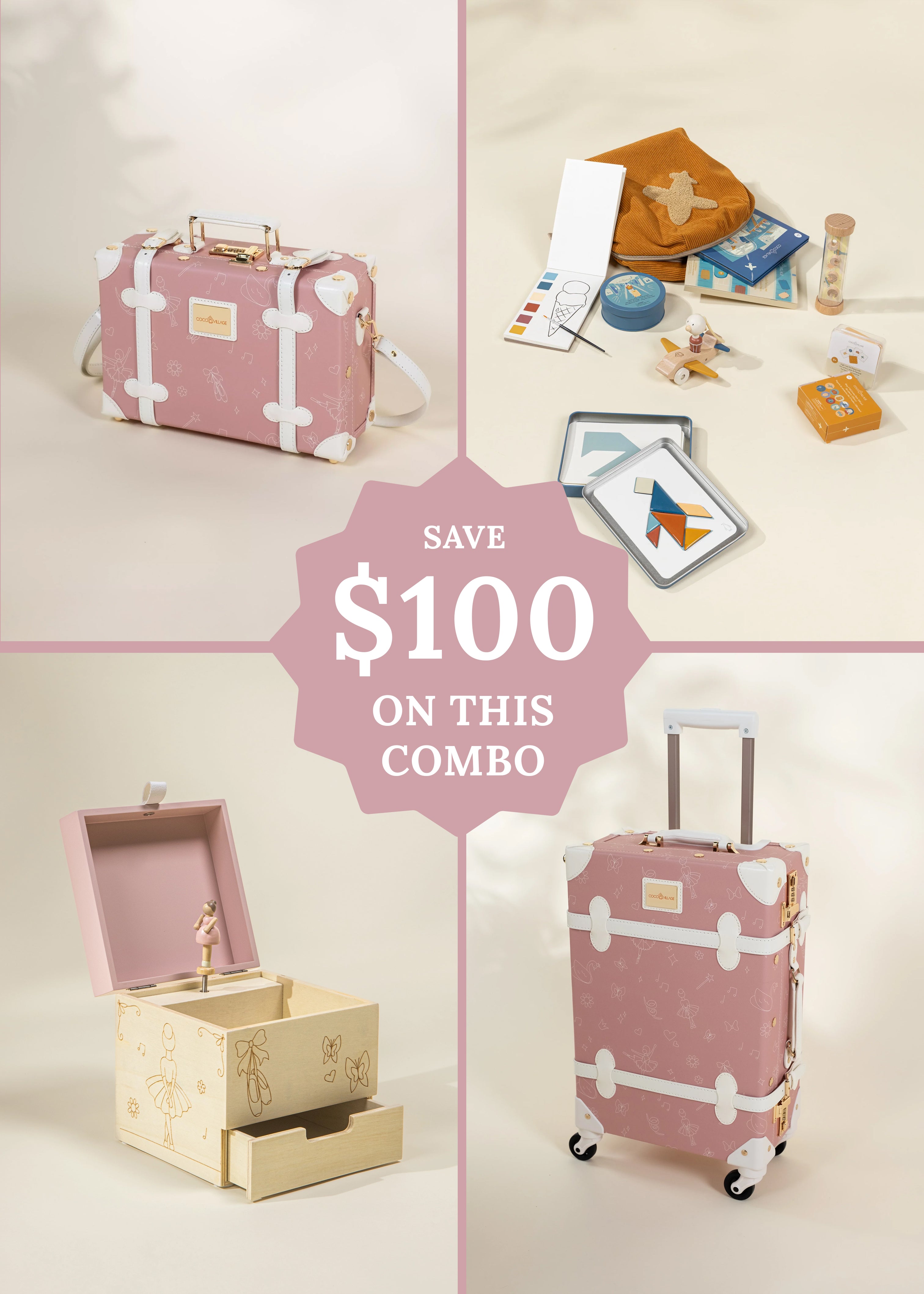Le combo Ensemble des Petits Voyageurs invite les enfants à explorer le monde à travers le jeu, les histoires et la musique. Parfait pour les petits rêveurs qui aiment voyager, organiser leurs affaires et partir à l’aventure... même à la maison !