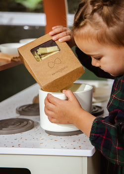 Cet ensemble est sûr de stimuler la créativité et le jeu imaginatif, encourageant les enfants à se prendre pour des chefs et à améliorer leurs compétences sociales et cognitives. Parfait seul ou combiné avec des modules de jeu d'imitation, tels que le Stand de Marché et Théâtre 2-en-1 en Bois et la Cuisine de Jeu (vendus séparément).