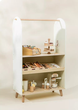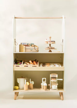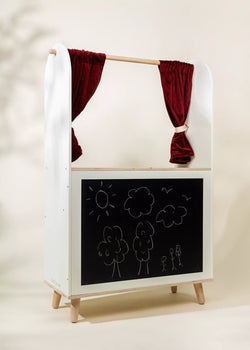 Notre kisoque de marché et théâtre en bois 2-en-1 est un jouet polyvalent qui se transforme d'un marché animé rempli de nos ensembles d'aliments en bois* à un stand de théâtre captivant pouvant être utilisé avec nos marionnettes en bois*. Parfait pour les petits entrepreneurs et les artistes en herbe, cet ensemble de jeu encourage l'interaction sociale, les histoires imaginatives et des heures de jeu immersif. Laissez la créativité de votre enfant s'épanouir avec cet ajout unique à leur salle de jeux ! *Vendu séparément