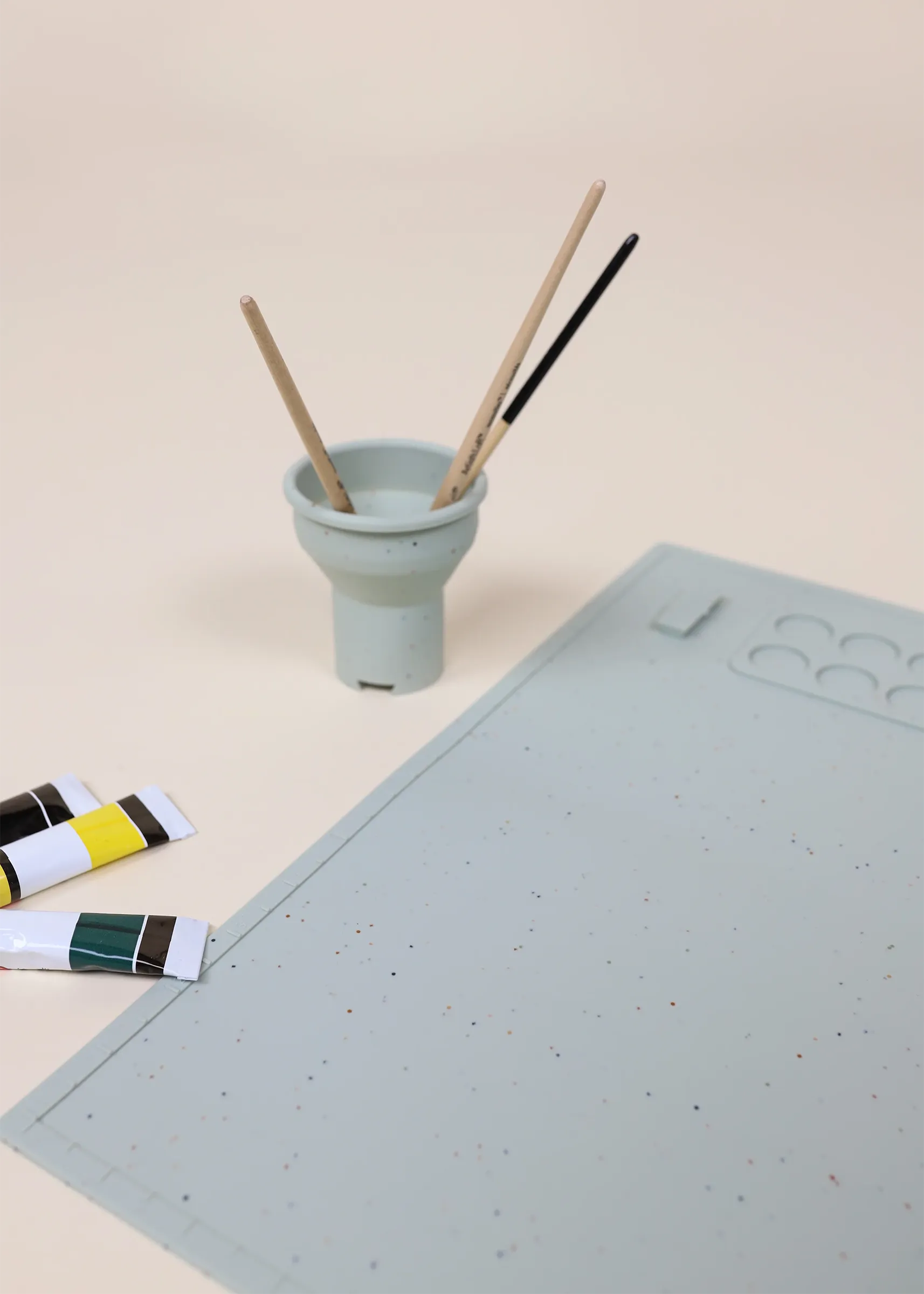Removable & Collapsible Water Cup: A handy water cup that’s easy to remove and collapse for quick storage. Ideal for rinsing brushes without spills, keeping your little one’s workspace neat and tidy.