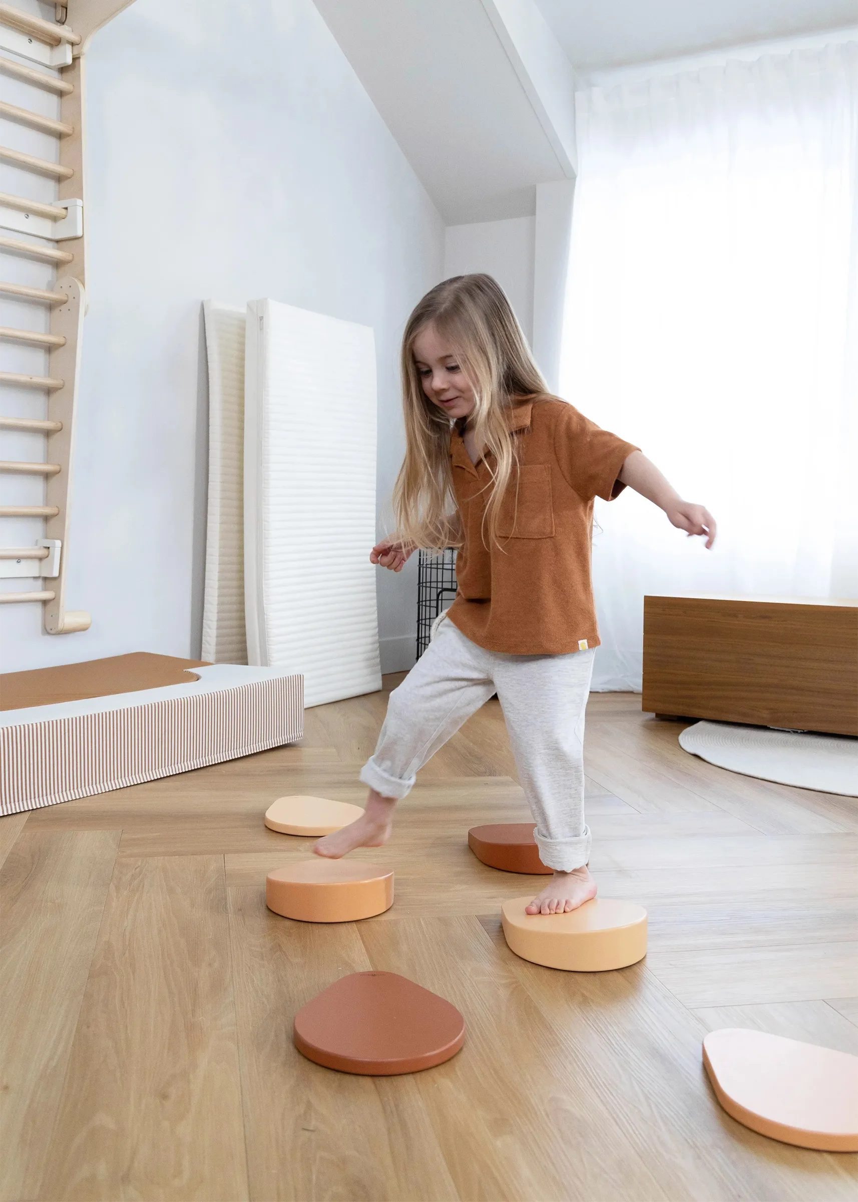 Designed to enhance balance and coordination, it helps children develop motor skills, agility, and boosts self-confidence through active play. The set features flat and angled surfaces that provide varying levels of challenge, making it ideal for growth and learning at any pace.