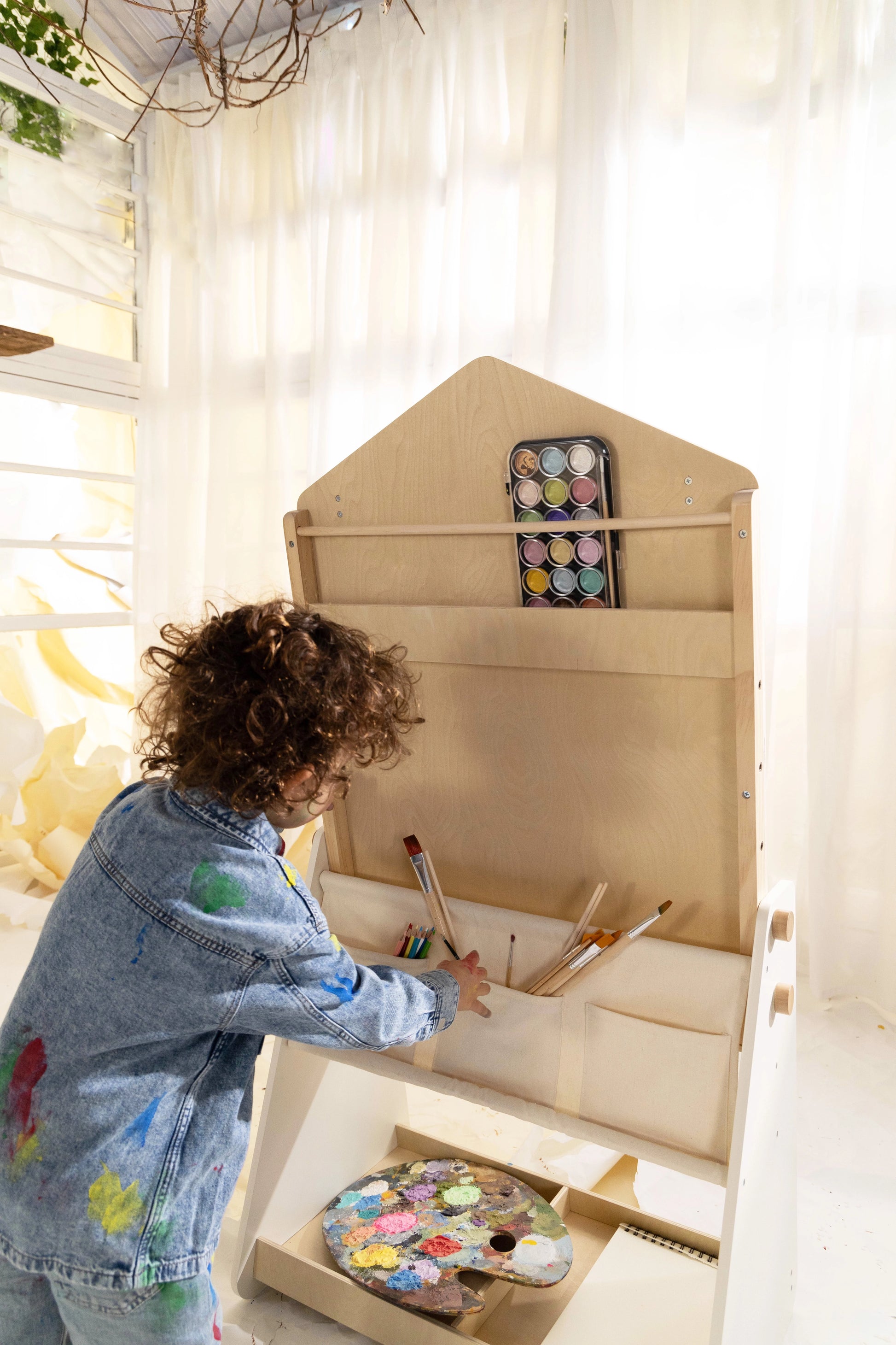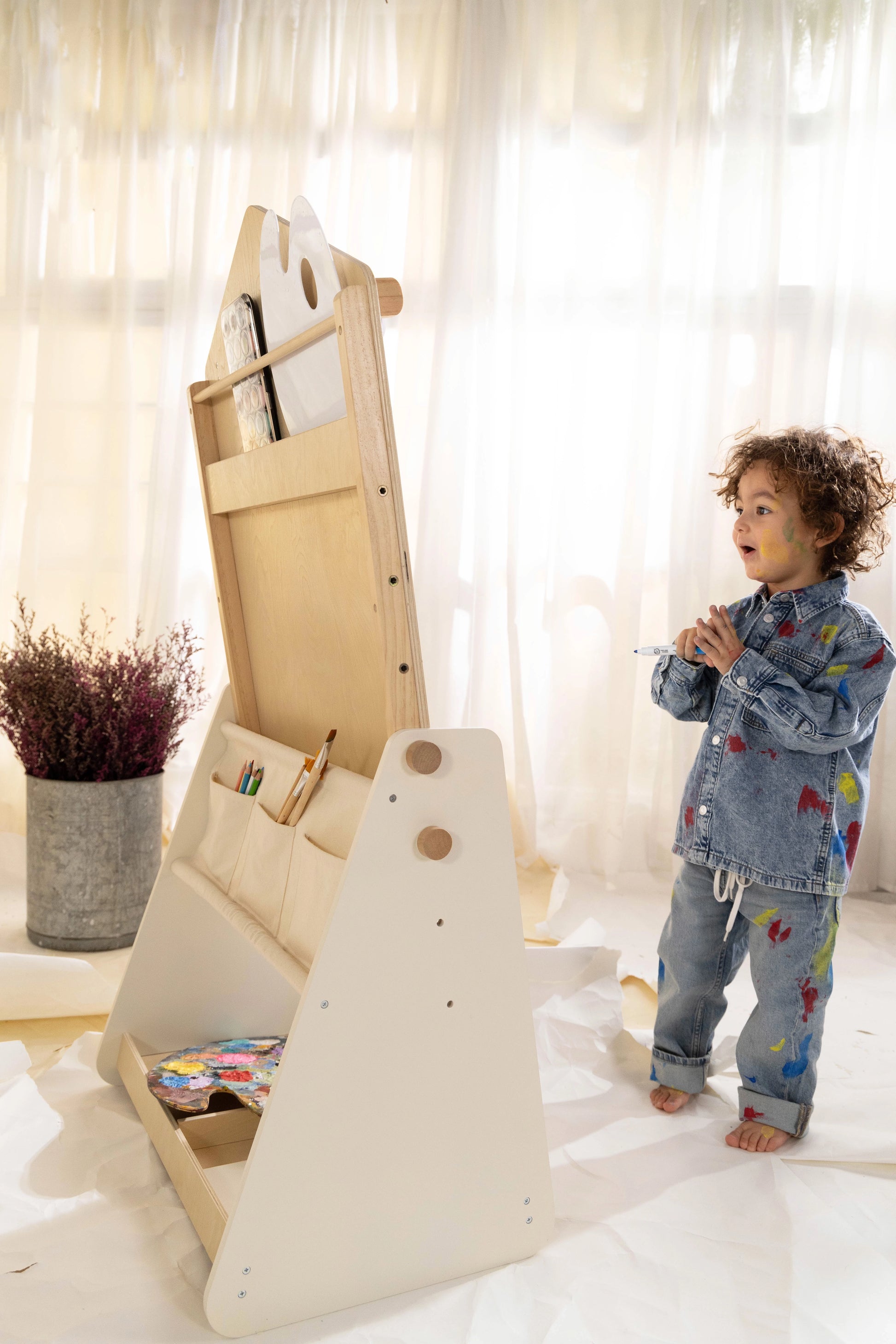 Give your little artist a creative space with this adjustable wooden art easel, designed to grow with your child. Made from high-quality wood, it offers stable support for painting and drawing, with multiple storage compartments to keep art materials organized.