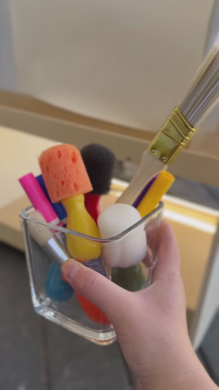 • Two cups to hold water or brushes, ideal for cleaning brushes during painting sessions.