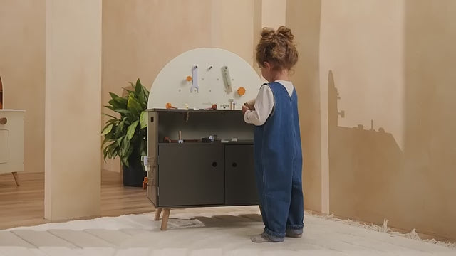 Pretend Play- Workbench Playset with Multicolored Tools - Wood - Grey and White - Hammer - Wrench - Screwdriver - Midcentury - Minimalist - Coco Village